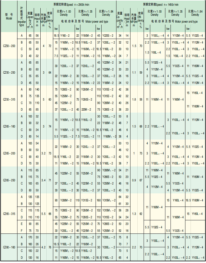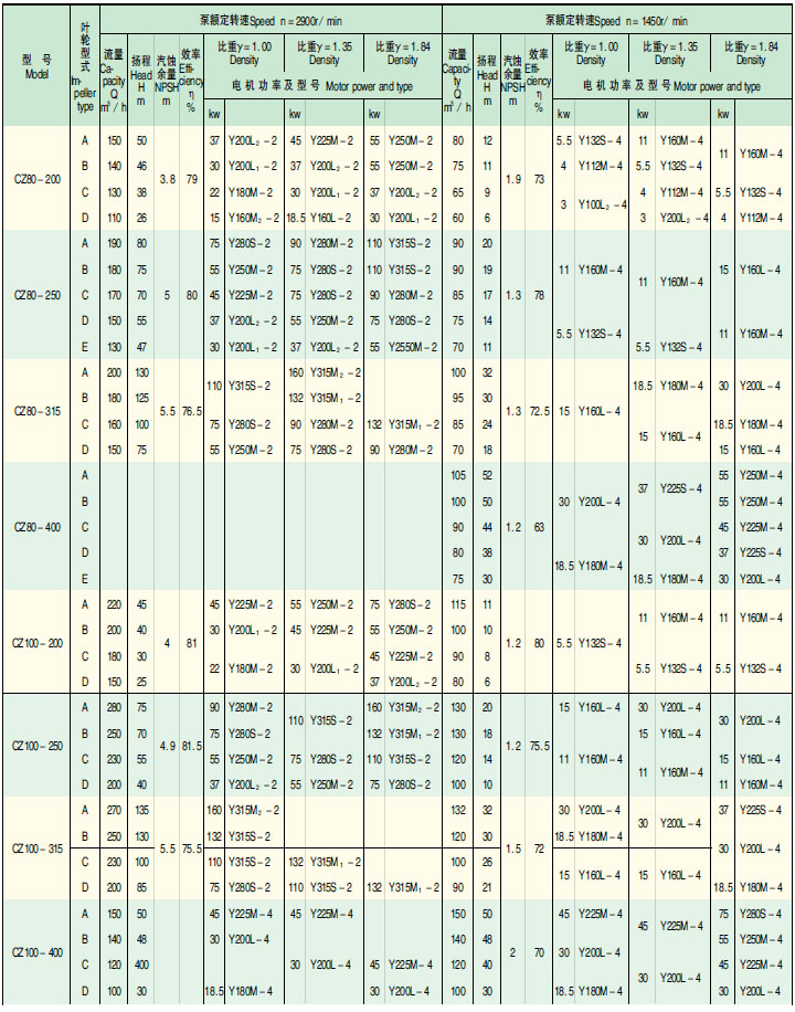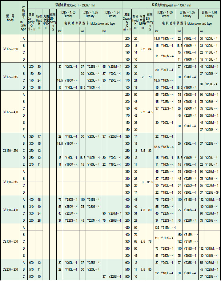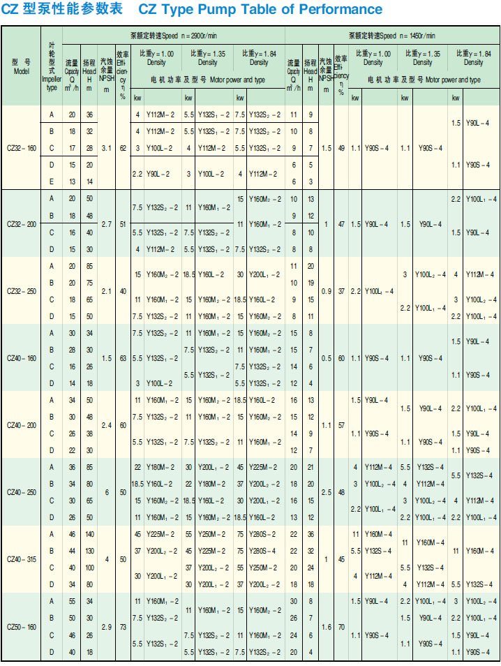 ★ CZ 化工泵的性能范围包括了 IH 系列标准化工泵所有性能,其效率、汽蚀性能等指标均超过 IH 型泵。